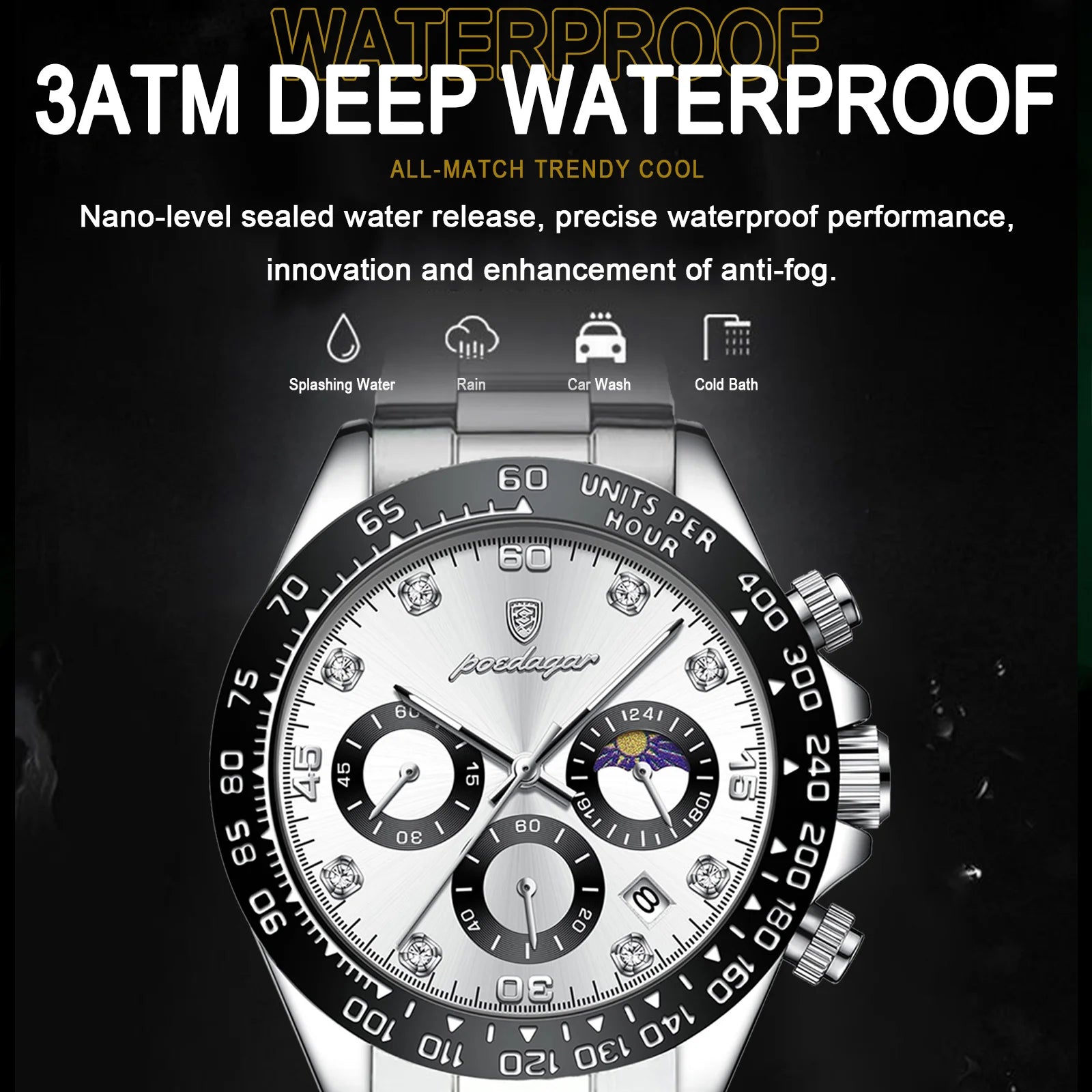 - Funcionalidades Avançadas: Cronógrafo, calendário completo e data automática garantem praticidade para o uso diário.