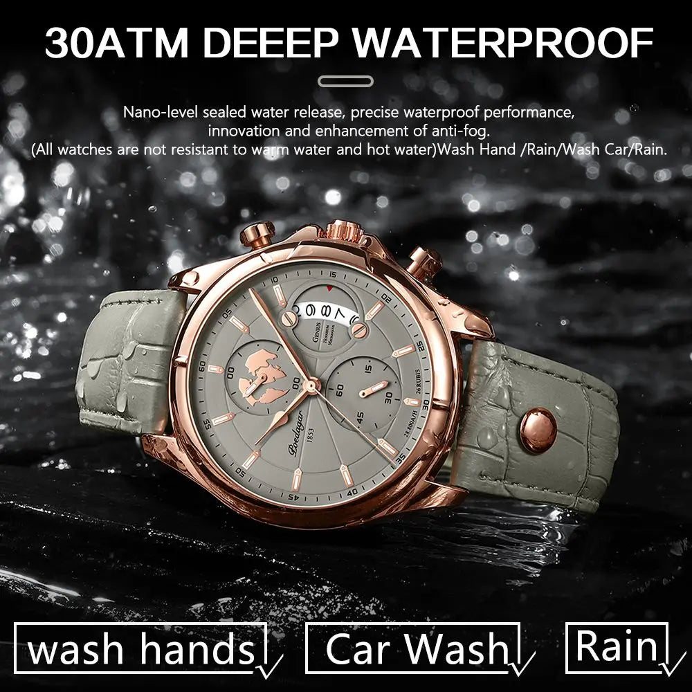 - Funções Avançadas: Cronógrafo, calendário perpétuo e ponteiros luminosos, ideais para quem busca praticidade e estilo.