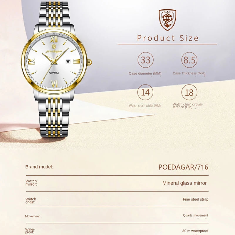 ✨ Design Sofisticado: O relógio POEDAGAR traz o equilíbrio perfeito entre moda e praticidade, ideal para mulheres que buscam um toque de classe no dia a dia.